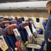 Kalibaf, yolculuk sırasında uçaktan bir fotoğraf karesi paylaştı. Görselde, 28 Şubat'ta Minab kentindeki Şeceretü't-Tayyibe Kız İlkokulu'na düzenlenen saldırıda ölen öğrencilerin fotoğraflarının uçak koltuklarına konulduğu görüldü. Kalibaf paylaşımına, "Bu uçuşta benimle olan yoldaşlarım" notunu ekledi.