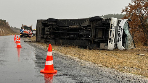 Konya'nın Beyşehir ilçesinde saat 07.30 sıralarında okul servisinin kayganlaşan yoldan çıkıp, devrildiği kazada 28'i öğrenci 29 kişi yaralandı. Kazada yaralanan 28 öğrenci ile servis şoförü ambulanslarla Beyşehir Devlet Hastanesi'ne kaldırıldı.