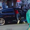 Kanlar içinde kalan sürücü aracıyla kaçmaya çalışırken, saldırgan elinde bıçakla küfürler savurdu. O anlar cep telefonu kamerasına yansıdı.