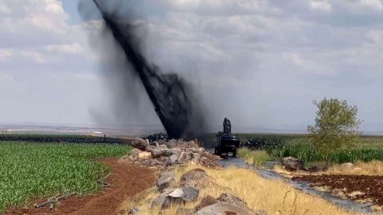 Şanlıurfa Siverek'te delinen boru hattından metrelerce yükseğe petrol fışkırdı.