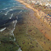 Dakar'ın kuzeybatısında yer alan ve kentin en kalabalık yerleşimlerinden olan Yoff semtindeki plaj havaların ısınmasıyla doldu taştı.