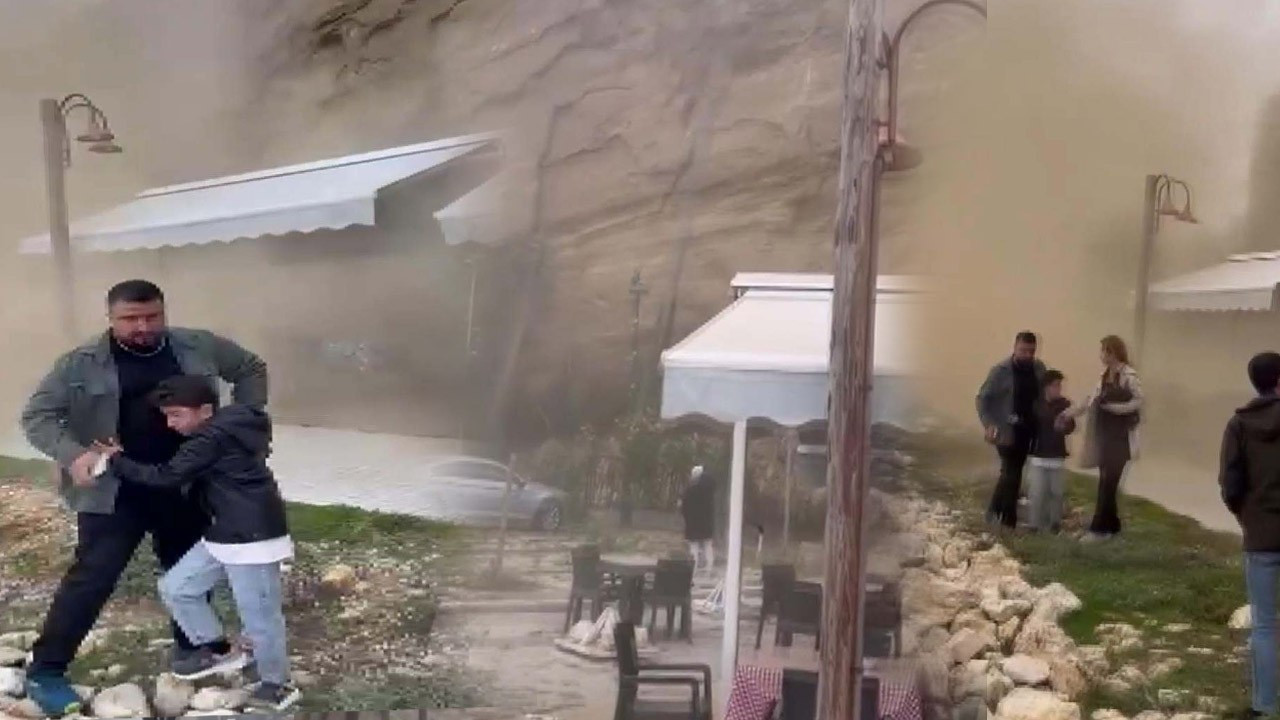 Bu sırda 40 metre yükseklikten kaya parçaları sahil yoluna düştü.