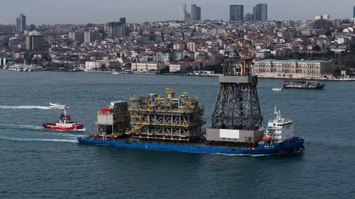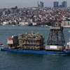 Sondaj kulesini taşıyan gemi boğazdan geçti