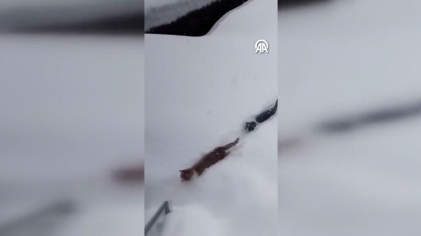 Köydeki son durumu anlatan Şahin, karda yürüyen kedilere seslendi.