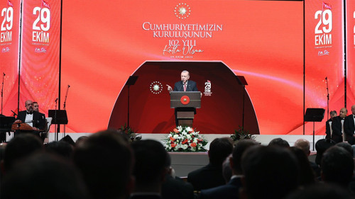 Sizlere veda etmeden evvel 2025 Cumhurbaşkanlığı Kültür ve Sanat Büyük Ödülüne layık görülen sanatçılarımızı, ilim ve kültür erbabımızı paylaşmak istiyorum. Bilim ve kültür alanında Süleyman Seyfi Öğüt. Resim alanında Yalçın Gökçebağ. Müzik alanında Yalçın Tura. Arkeoloji alanında Fahri Işık. Fotoğraf alanında Ali Jadallah'a ödüllerini inşallah tevcih edeceğiz. Ödül sahiplerimizi tebrik ediyor. Türkiye'nin kültür, sanat ve ilim birikimine yaptıkları değerli katkılar için kendilerine teşekkür ediyorum. Atatürk Uluslararası Barış Ödülümüzü ise Birleşmiş Milletler Genel Sekreteri Sayın Antonio Guterres'e takdim edeceğiz. Sayın Guterres'e de tüm dünyada barışın ve istikrarın hakim olması için yürüttüğü çalışmalar dolayısıyla teşekkürlerimi iletiyorum. Sizleri ve aziz milletimizi bir kez daha muhabbetle selamlıyor. 29 Ekim Cumhuriyet Bayramımız kutlu olsun diyorum.