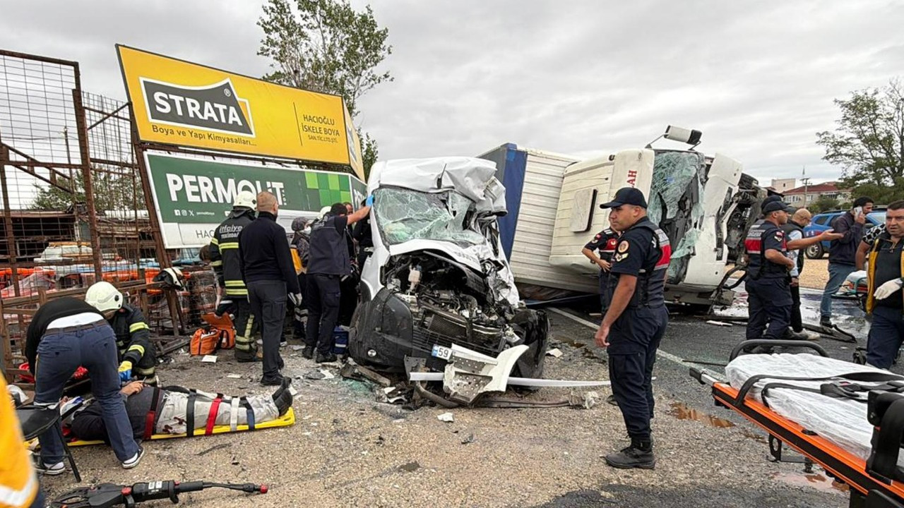 Tekirdağ'ın Ergene ilçesinde kamyon ile fabrika personelini taşıyan minibüs çarpıştı.
