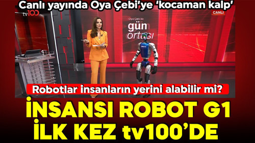 Atatürk Havalimanı'nda düzenlenen Türkiye'nin en büyük havacılık, uzay ve teknoloji festivali TEKNOFEST, dün son gününde de ziyaretçi akınına uğradı. TEKNOFEST'in yıldızı insansı robot G1 tv100 ekranlarında Oya Çebi'nin konuğu oldu. Canlı yayında Oya Çebi için kocaman bir kalp yapan G1; aşk hakkında, robotların insanların yerine geçip geçmeyeceği konusunda ve Fenerbahçe'nin şampiyon olma ihtimali üzerine değerlendirme yaptı.