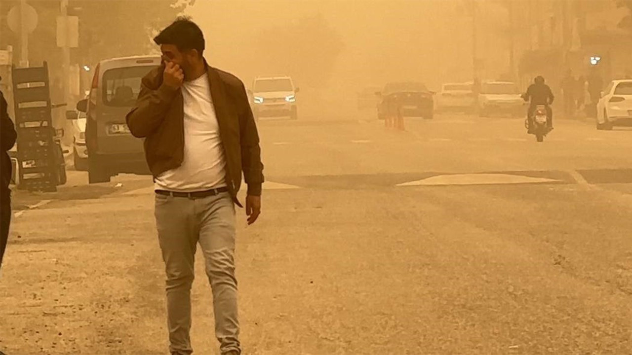 Suriye üzerinden gelen toz bulutu Şanlıurfa merkez ve sınır ilçesi Ceylanpınar'da gökyüzünü kapladı. Hayatı olumsuz etkileyen toz bulutundan korunmak için bazı vatandaşlar maske ile gezdi.