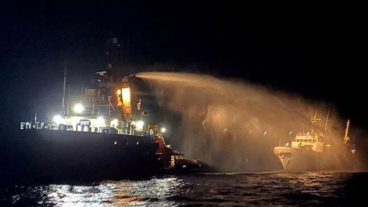 Sosyal medyada paylaşılan görüntülerde gemide şiddetli bir yangın ve patlama gerçekleştiği görülüyor.