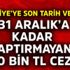Türkiye'de yaşayan vatandaşlarımızın öğrenmesi gereken önemli bir bilgi var. Çünkü son tarih 31 Aralık. Bu tarihten sonra yapılan denetimlerde kurala uymayan vatandaşlara 10 bin TL ceza kesilecek...