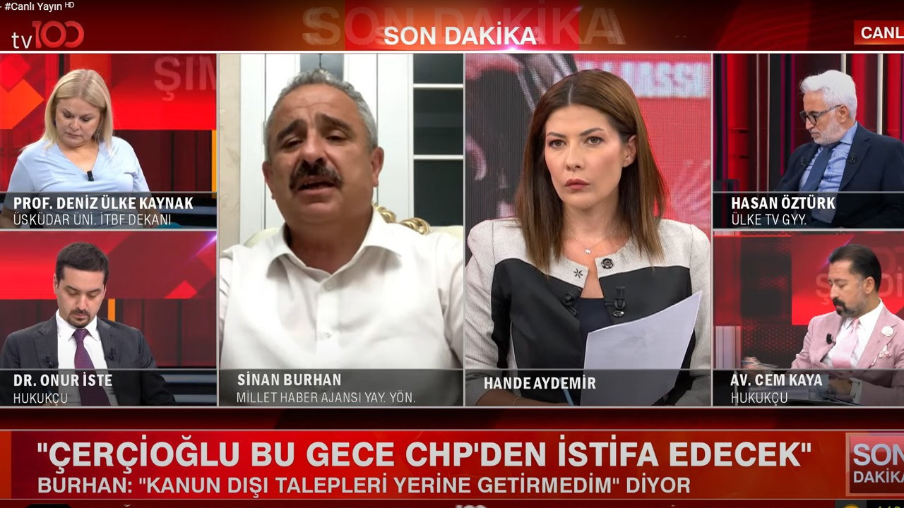 tv100'de Hande Aydemir ile Şimdi Konuşalım programına konuk olan Sinan Burhan, Çerçioğlu’nun partisinden istifa etme nedenine ilişkin iddiada bulundu.