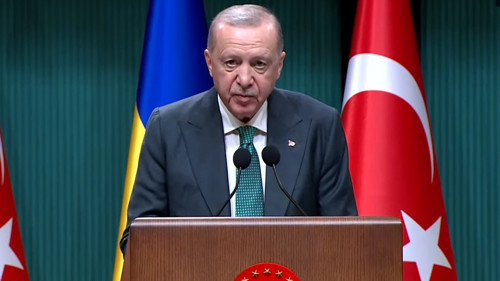 Cumhurbaşkanı Recep Tayyip Erdoğan, Ukrayna Devlet Başkanı Zelenskiy ile bir araya geldi. Ortak basın toplantısında konuşan Erdoğan, "İstanbul sürecinin daha kapsamlı bir içerikle artık akut hal alan sorunları giderecek şekilde yeniden devreye girmesinin faydalı olacağı kanaatindeyiz. Bölgede akan kanın durmasını arzu eden tüm ortaklarımızdan da İstanbul sürecine yönelik yapıcı yaklaşım sergilemelerini bekliyoruz" dedi.