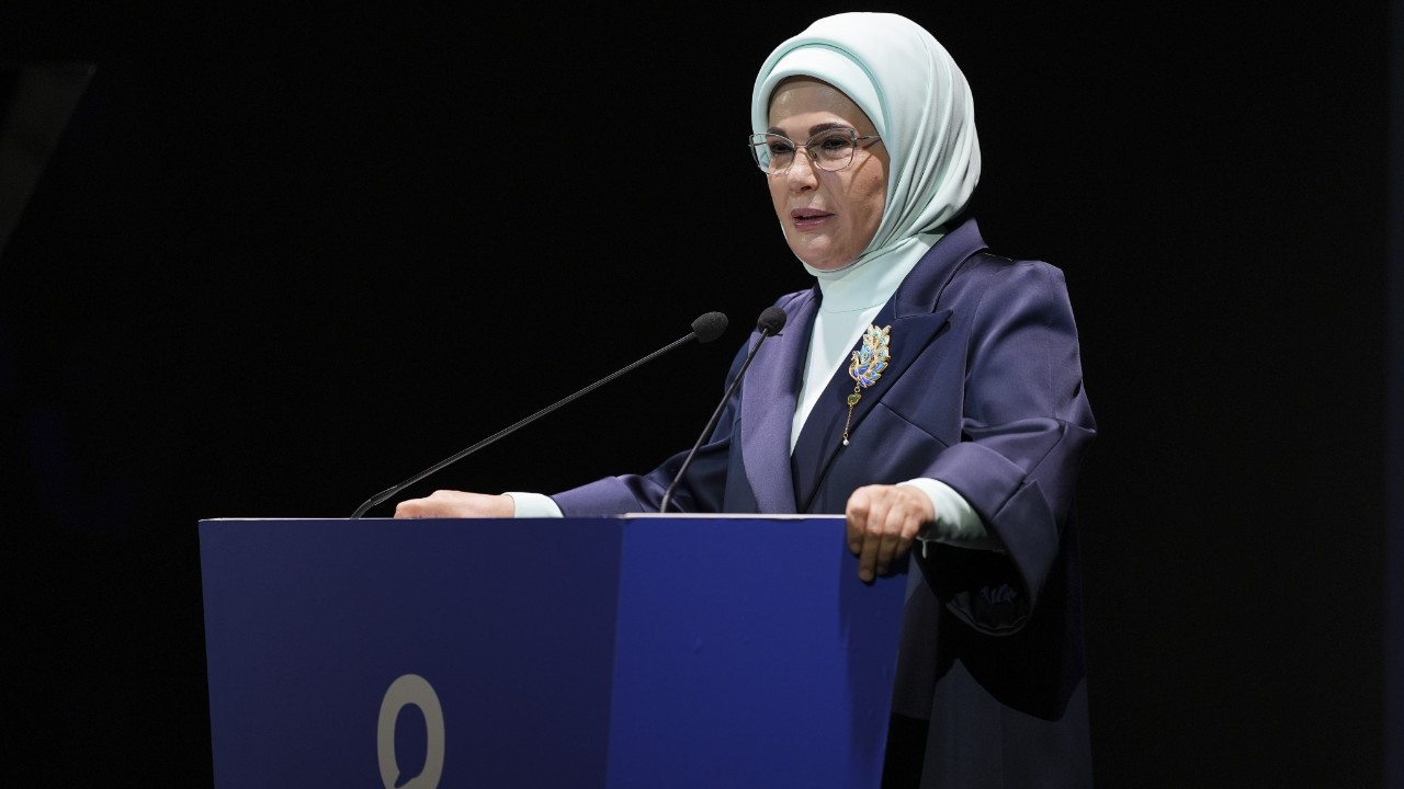 Emine Erdoğan, atık kirliliği, karbon salınımları, biyoçeşitlilik kaybı gibi çevre ve iklim değişikliği sınamalarının sınır tanımayan ve herkesi etkileyen ortak sorunlar olduğuna dikkati çekti.