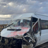 Van'ın Erciş ilçesinde sürücülerinin isimleri ve plakaları öğrenilemeyen öğrenci servisiyle bir tır, bilinmeyen bir sebeple çarpıştı.