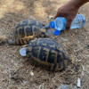 Kaplumbağalardan birine bir vatandaş su içirdi. O anlar cep telefonuyla görüntülendi.