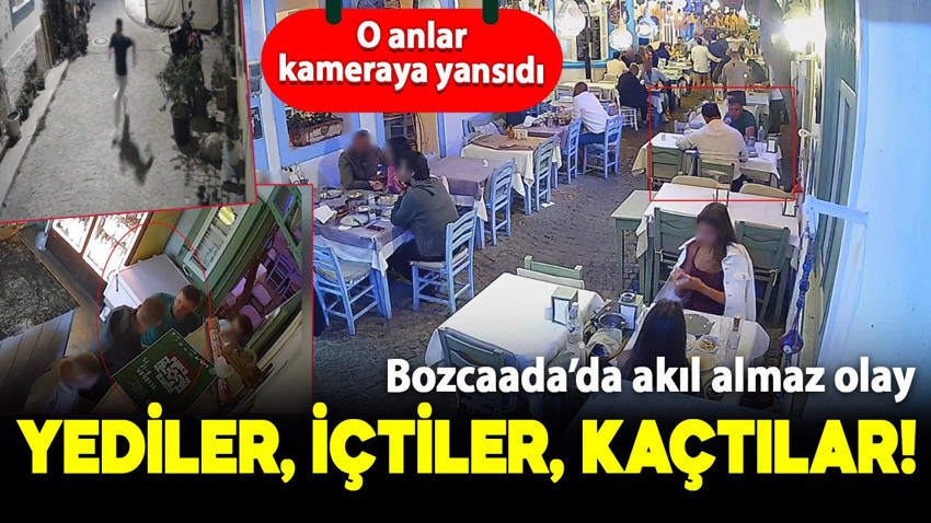 Bozcaada'da dün akşam meydana gelen olayda, 2 arkadaş, yiyip içip eğlendikten sonra hesabı ödemeye gelince çeşitli bahaneler öne sürdü. İşletme sahibinin durumu fark etmesi üzerine 2 şahıs bir anda koşarak kaçtı ve kayıplara karıştı. O anlar ise güvenlik kamerasına yansıdı.