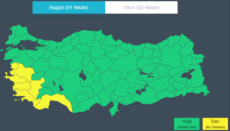 Batı bölgelerde beklenen sağanak ve gök gürültülü sağanağın İzmir, Aydın, Muğla çevreleri ile Antalya ve Manisa'nın batı, Denizli'nin güney ilçelerinde yerel kuvvetli olacağı belirtildi.