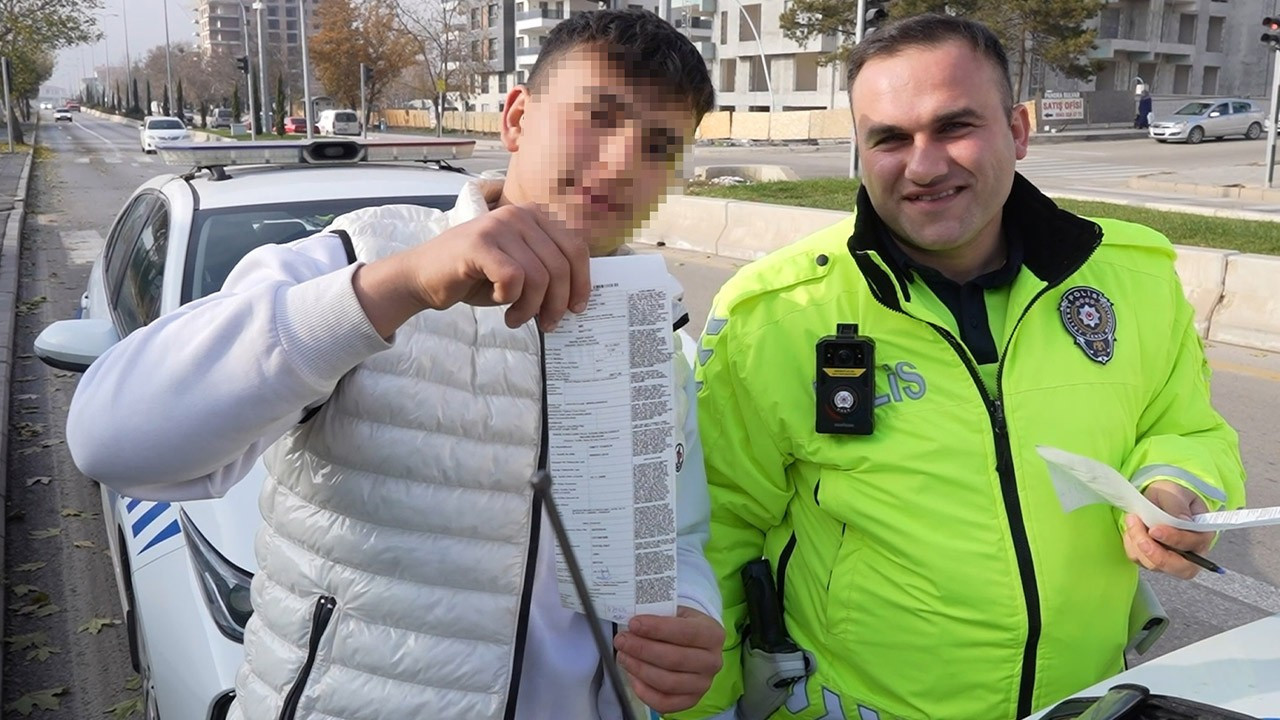 Uygulama noktasından yapılan anons üzerine bölgeye sevk edilen ekipler, sürücünün ehliyetsiz olduğunu belirledi. Yeni aldığı aracı ilk kez kullanan Umut Tursun'a 18 bin 677 lira idari para cezası uygulanırken, ceza makbuzunu tutarak polislerle hatıra fotoğrafı çektirmek istemesi ve ardından sigara talebinde bulunması dikkat çekti. İşlemlerin tamamlanmasının ardından araç trafikten men edilerek otoparka çekildi.