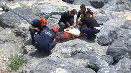 Zeytinburnu kayalıklarda feci olay! 3 metreden aşağıya düştü